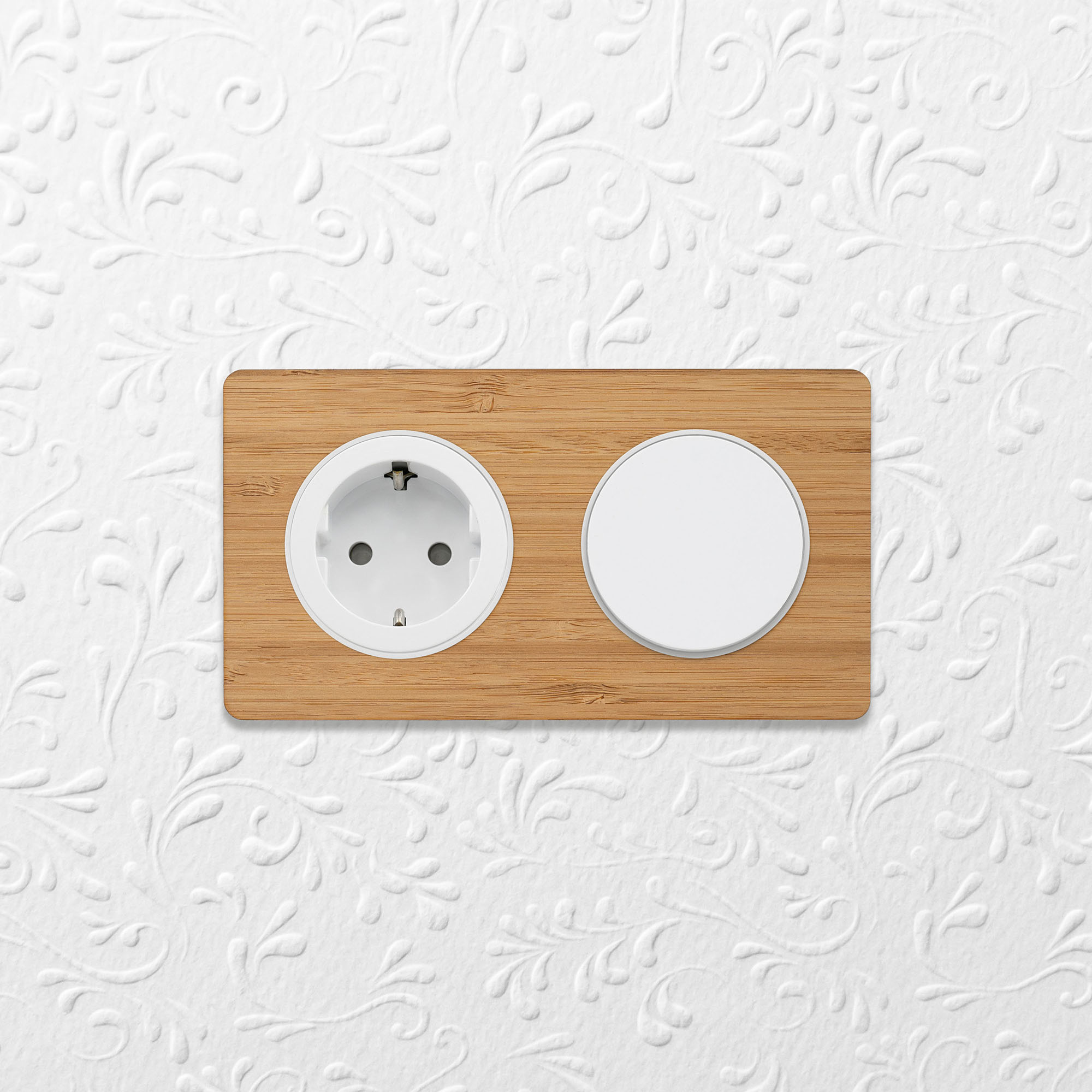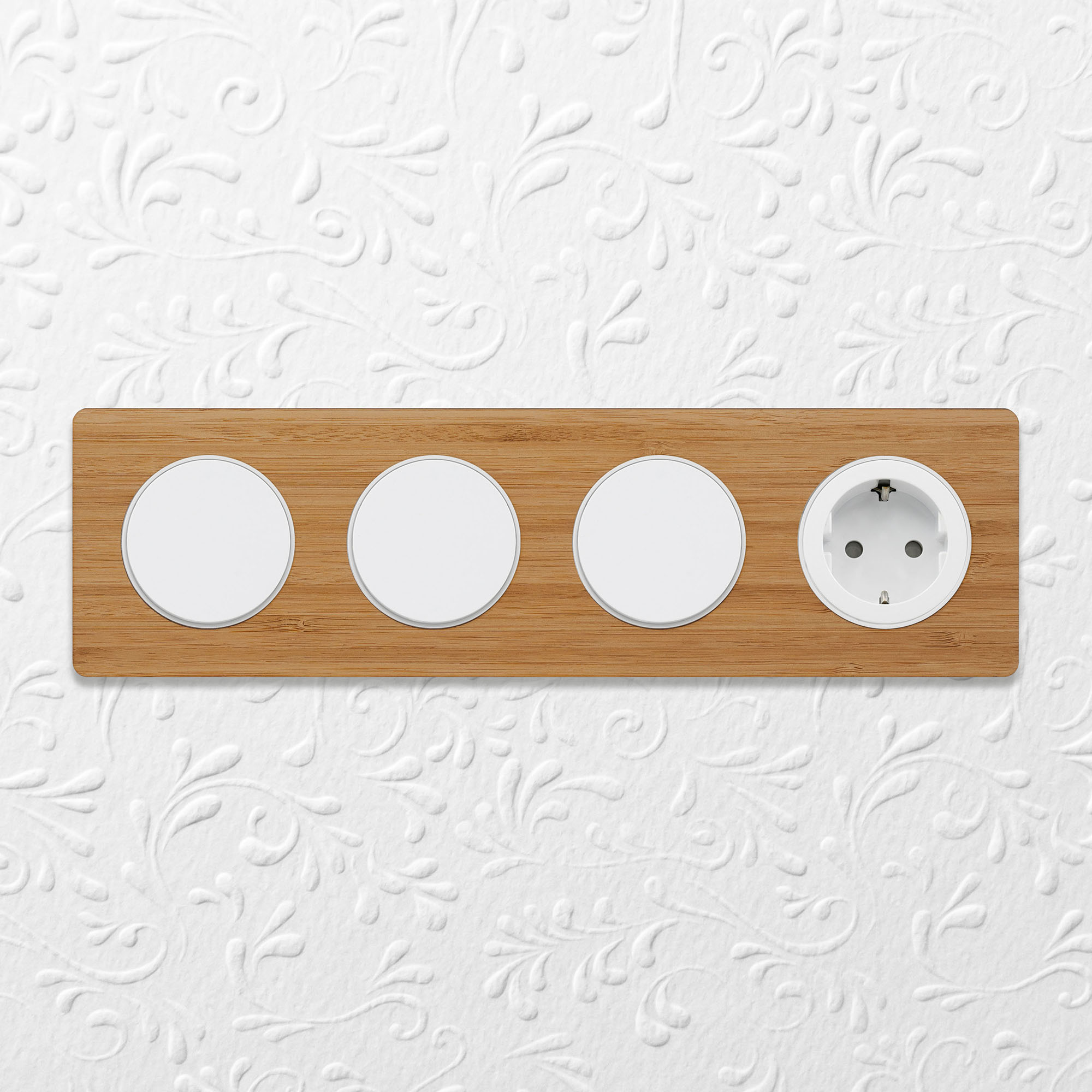 Met deze rond gevormde bamboe Decoplates frontjes, compatibel met het achterliggende schakelmateriaal van de Odace serie van Schneider Electric, haal je op een betaalbare wijze stijl en design in je huis. De kunststof schakelmateriaalserie kenmerkt zich door ronde binnenwerken. Zo is een stopcontact rond van vorm, maar dus ook een lichtknop. Die vormgeving maakt het een vriendelijk speels product. Deze schakelmateriaalserie heeft door de hoge inzet van gerecyclede kunststoffen vele duurzaamheidsprijzen gewonnen. Win-win dus in combinatie met compatibele Decoplates frontjes!