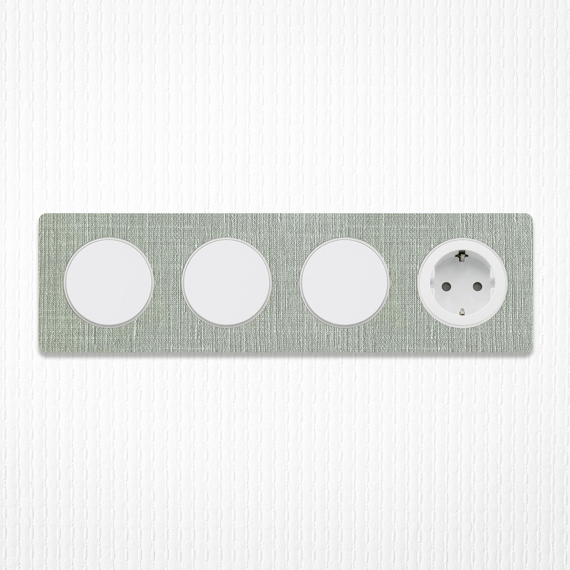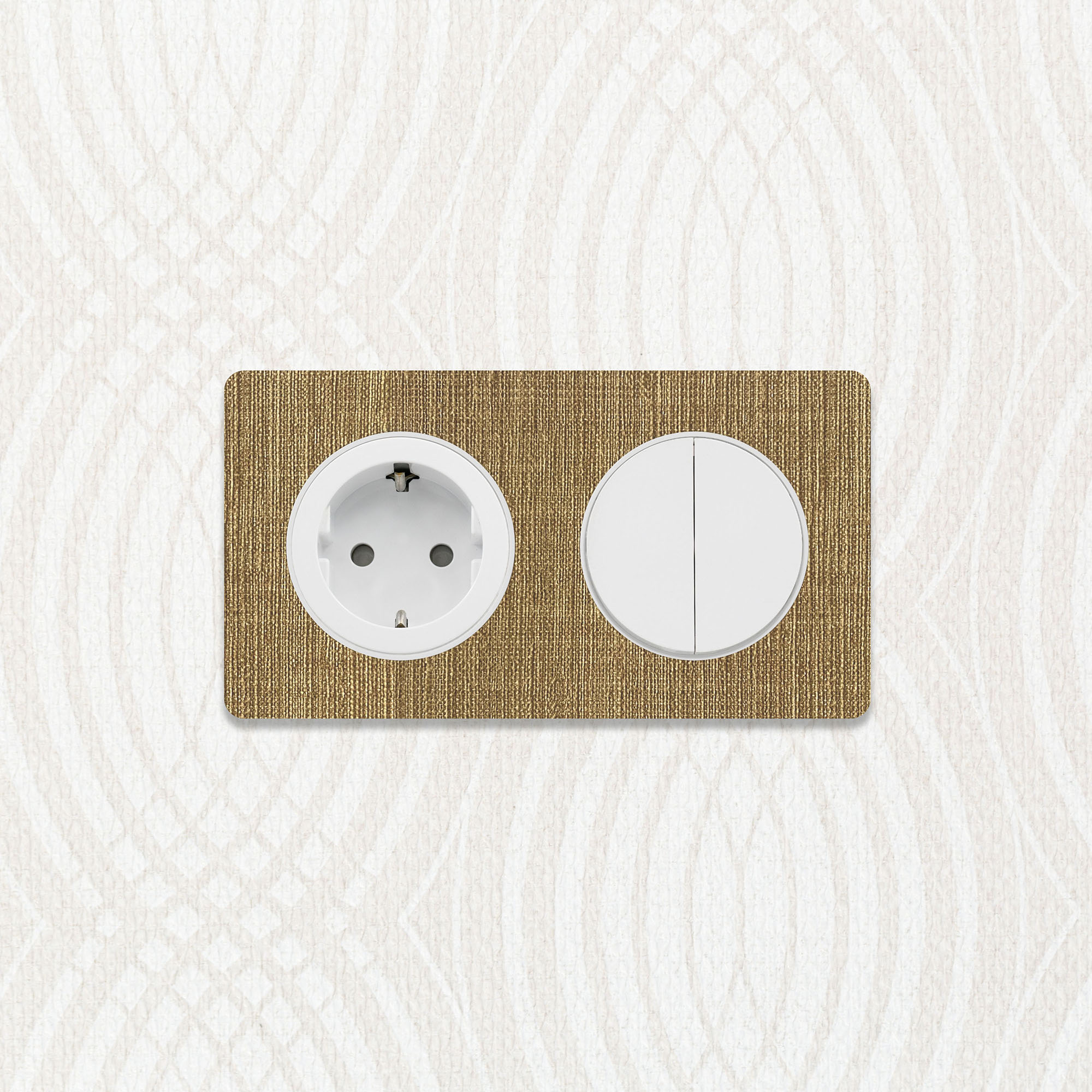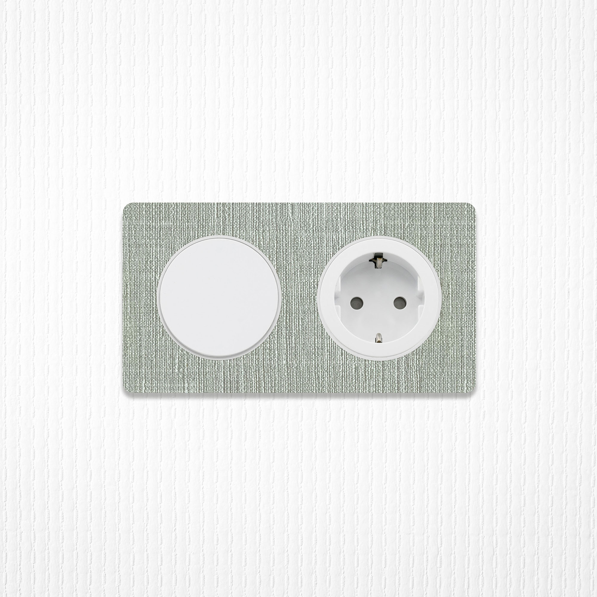 Prachtige Decoplates plakfrontjes van linnenlook behang, compatibel met rondvormige Odace schakelmateriaal onderdelen van merk Schneider Electric. De frontjes van kwalitatief wandbehang voor deze ronde afdekramen zijn standaard leverbaar in de kleuren grijs en bruin linnen, en zijn als materiaal geproduceerd door onze Nederlandse materiaalpartner Vescom. Wist je dat deze behangsoorten PVC- en weekmakersvrij geproduceerd zijn? Hét duurzame alternatief dat ook nog eens gemakkelijk afneembaar is. Veelzijdig toepasbaar binnenshuis dus.
