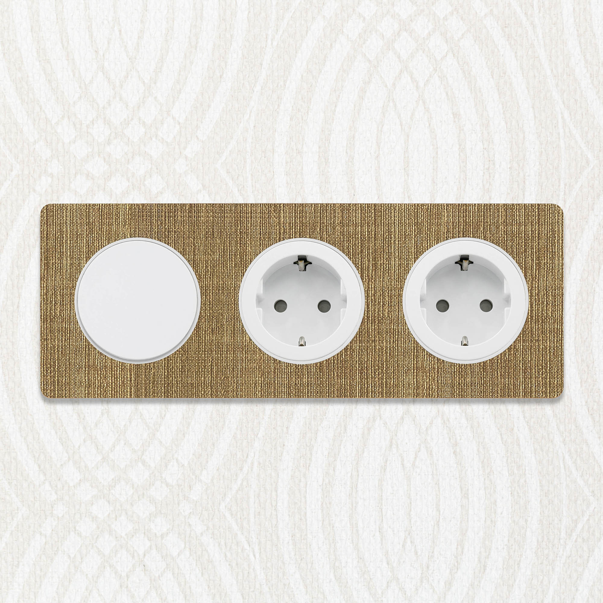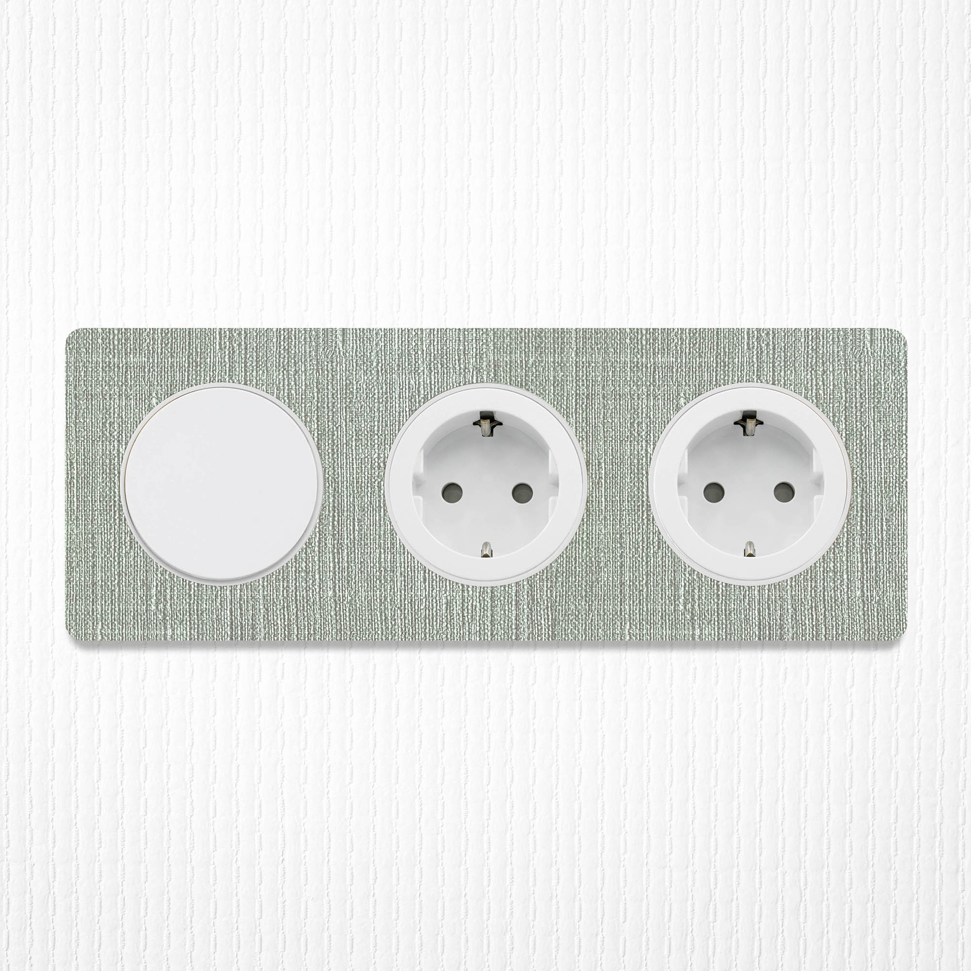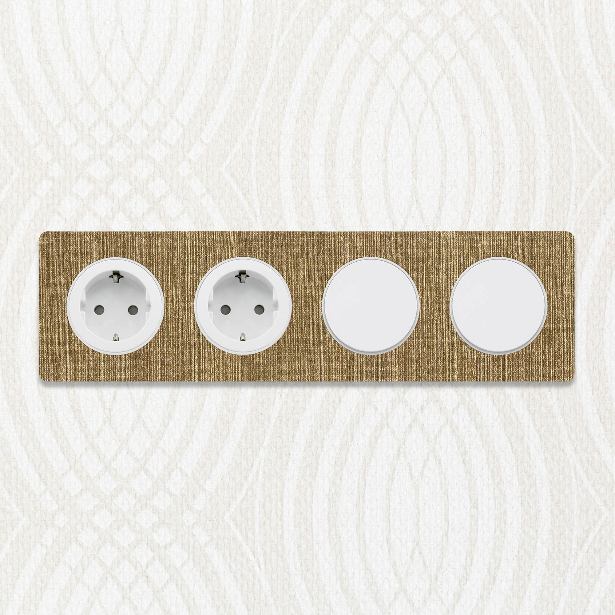 Prachtige Decoplates plakfrontjes van linnenlook behang, compatibel met rondvormige Odace schakelmateriaal onderdelen van merk Schneider Electric. De frontjes van kwalitatief wandbehang voor deze ronde afdekramen zijn standaard leverbaar in de kleuren grijs en bruin linnen, en zijn als materiaal geproduceerd door onze Nederlandse materiaalpartner Vescom. Wist je dat deze behangsoorten PVC- en weekmakersvrij geproduceerd zijn? Hét duurzame alternatief dat ook nog eens gemakkelijk afneembaar is. Veelzijdig toepasbaar binnenshuis dus.